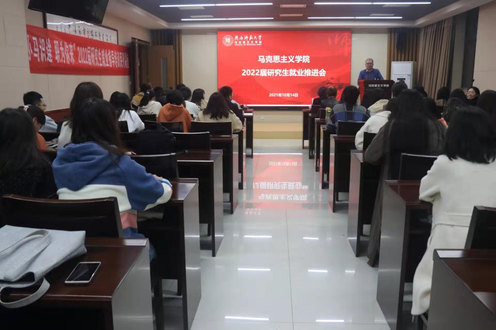 为进一步做好我院2022届研究生的就业指导与服务工作,帮助研究生全面了解就业政策,明确就业目标,树立正确的就业观念,提升我院研究生就业质量。10月14日晚,在学院五楼大中小思政课一体化研究中心召开了2022届研究生就业推进会,学院党委副书记张倩及2022届全体研究生毕业生参加了此次会议,会议由研究生辅导员王健主持。张倩对2022届研究生的就业提出了三点叮嘱:第一,认清形势,制定目标。她谈到,今年就业竞争激烈,同学...