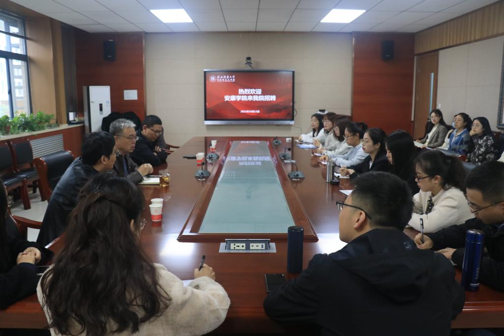 10月13日上午,安康学院马克思主义学院副院长单林波来我院招聘,我院副院长吴朝、研究生辅导员王健接待了单林波老师,学院2022届部分研究生参加了此次招聘。吴朝对单林波老师来我院招聘表示热烈欢迎,并介绍了我院研究生的培养情况。王健介绍了学院2022届研究生的基本情况。单林波向参与招聘的研究生详细介绍了安康学院的地理位置、校园环境以及马克思主义学院的学科发展情况,对此次招聘要求和学校人才引进政策都作了具体说明...